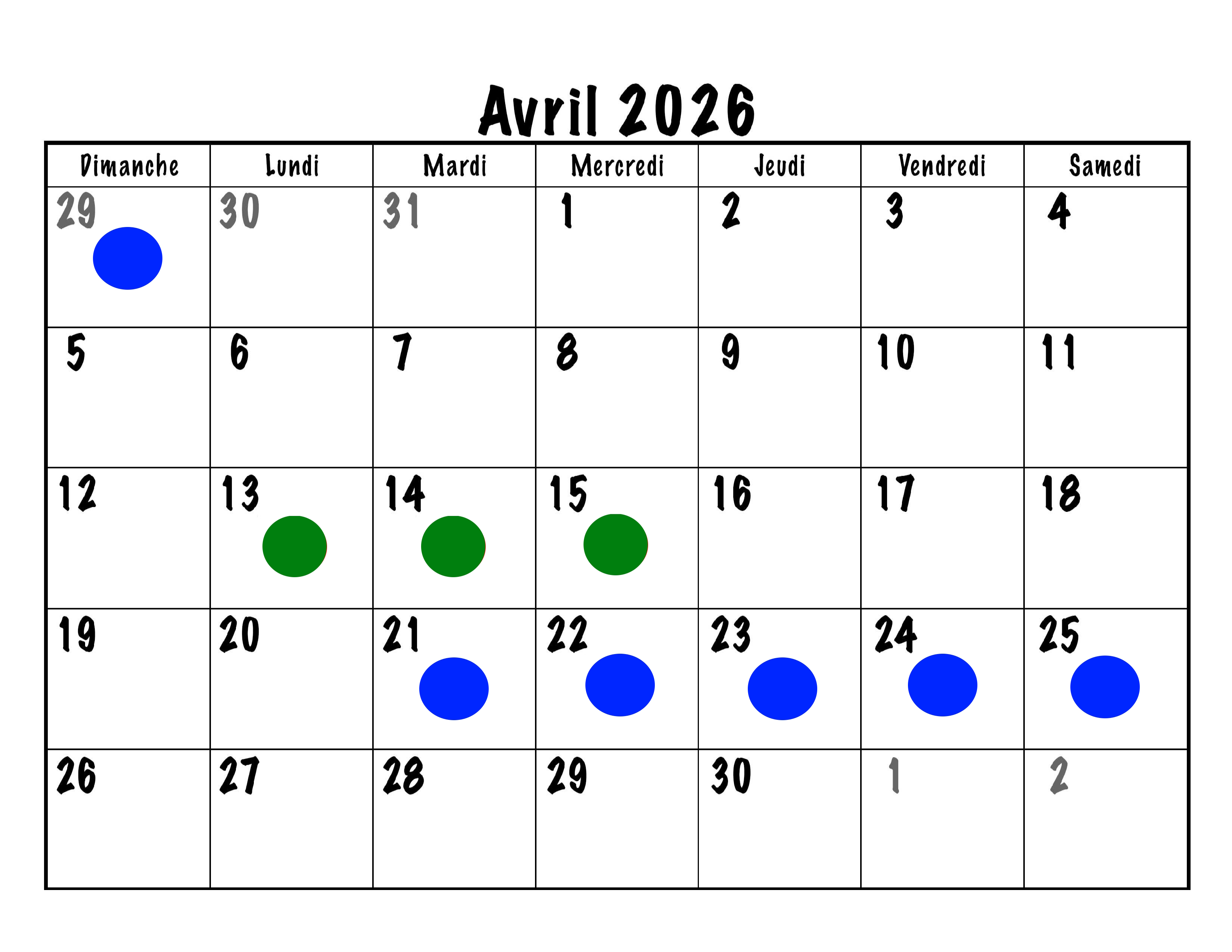 26 au 29: